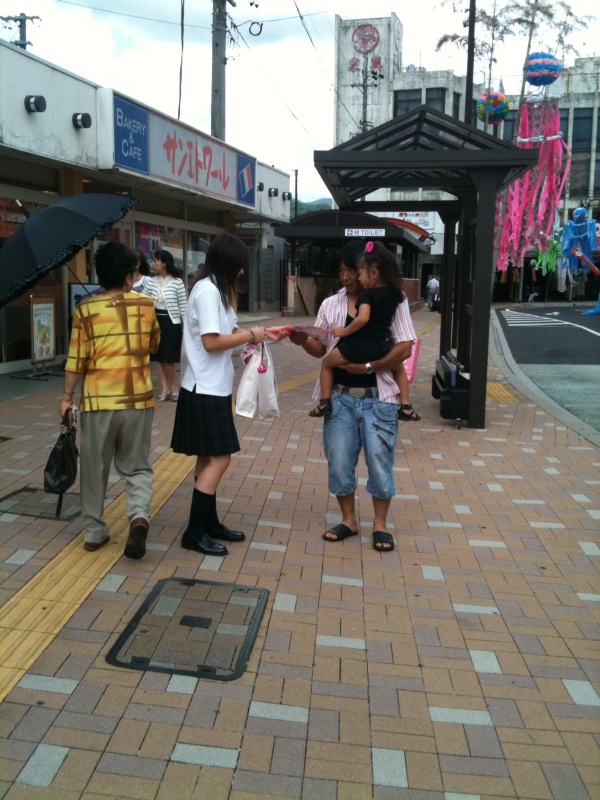 写真はチラシ等配布する女子高生
