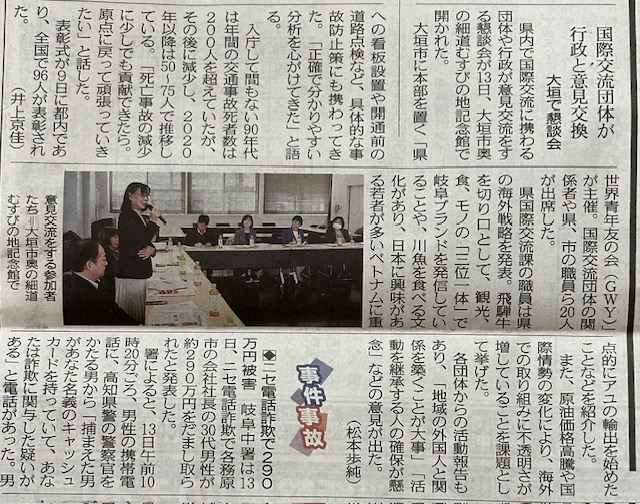 岐阜県世界青年友の会では2026年3月13日.大垣市奥の細道結びの地記念館にて