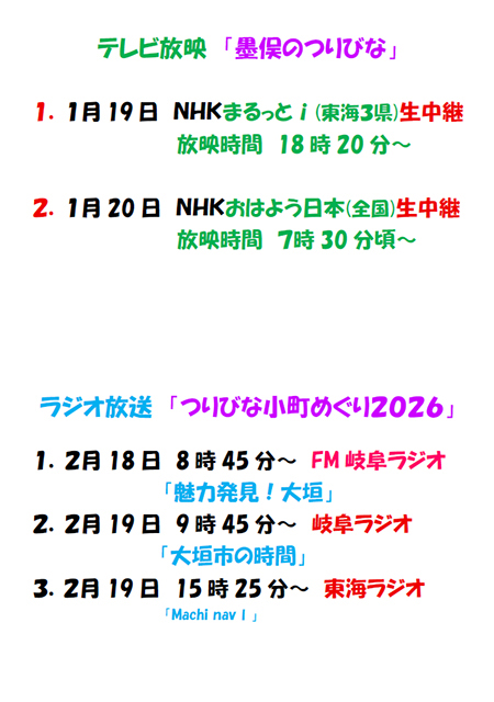 テレビ放映「墨俣のつりびな」、ラジオ放送「つりびな小町めぐり2026」(生中継) - 令和8年1月15日